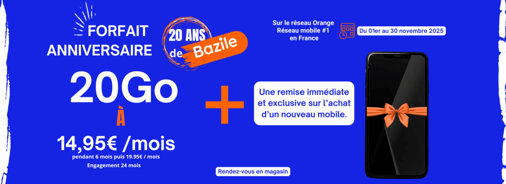 Bazile fête ses 20 ans avec une offre mobile exceptionnelle sur le réseau Orange